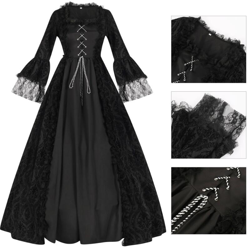 ゴシックコスチューム 舞台衣装 中世紀欧風コスチューム レディースロングワンピース 長袖 魔女 貴族 伯爵夫人 コスプレ 吸血鬼 ステージ衣装 ハロウィンパーティー 舞台劇 学 ハロウィンコスチューム