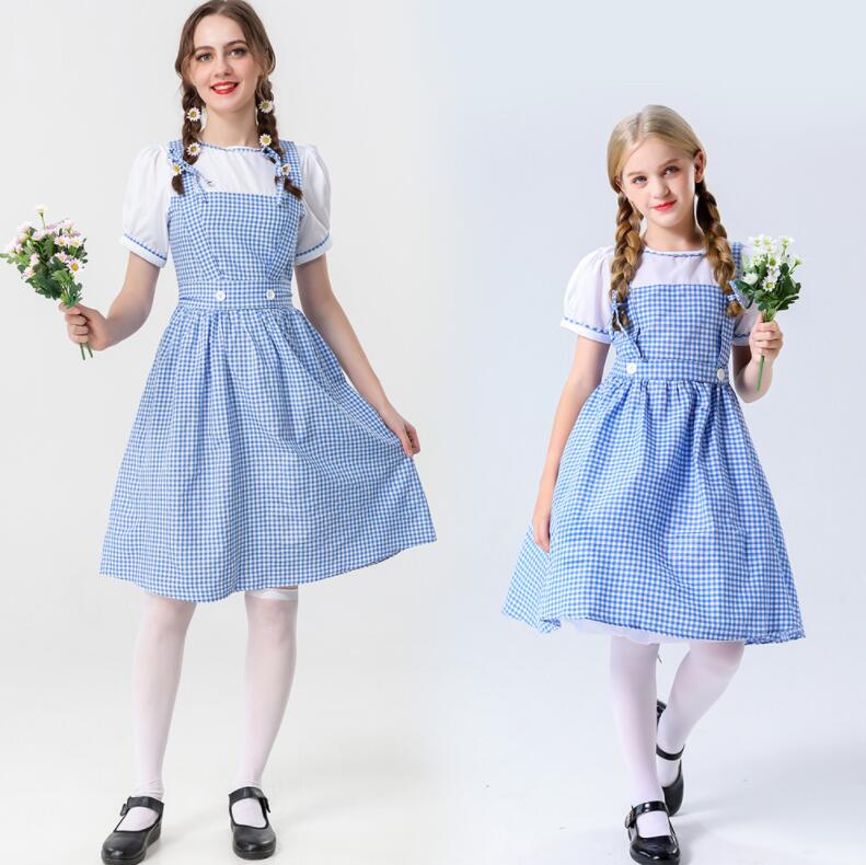 子供用コスチューム 大人用コスプレ衣装 親子お揃いコスチューム 半袖ワンピース チェック柄 ハロウィン衣装 ハロウィンコスチューム お姫様 舞台衣装