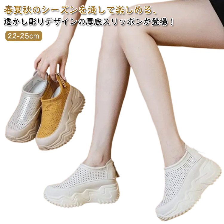 厚底 サンダル 透かし彫り レディース 通学 7cm身長アップ 厚底スリッポン レトロ風な浅履きスリップオン 快適な靴 シューズ 厚底スニーカー スリッポン 滑り止め 通勤 超 歩きやすい
