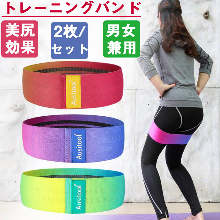 【筋トレに最適!】エクササイズバンド トレーニングチューブ 美尻 [2枚セット]