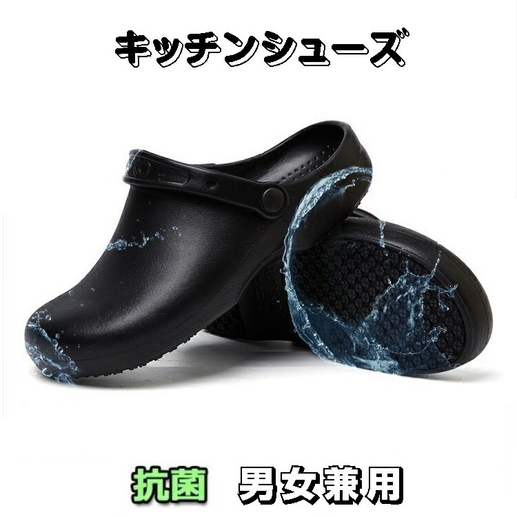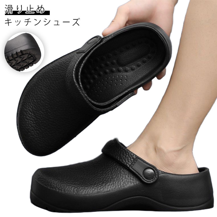 コックシューズ 厨房用シューズ キッチンシューズ コックサンダル キッチサンダル クッション性 飲食店 キッチン靴 滑り止め 男女兼用 ブラック
