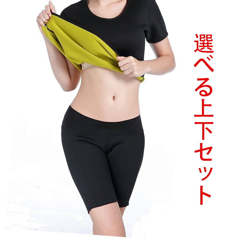 メール便送料無料 半袖上下セット発汗ウェア 半袖シャツ 5分丈パンツ 吸汗速乾 ホットシェイパー ダイエット レディース