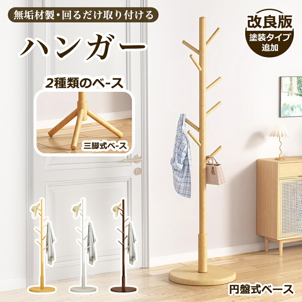 木製 ハンガーラック ポールハンガー 省スペース 天然木 玄関 ブナ コートハンガー パインハンガー 洋服掛け 洗濯物干し かばん 帽子掛けスタンド 枝型設計 組立簡単 頑丈 玄関収納 3色