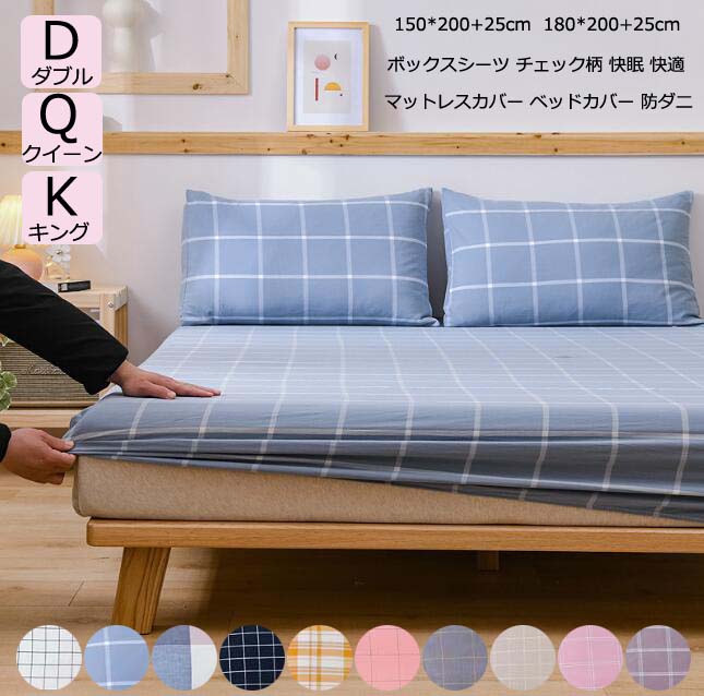 ボックスシーツ ホテル仕様 高級 快眠 肌に優しい マットレスシーツ マットレスカバー チェック柄 ダブル クイーン キング シーツ ベッドカバー 150*200+25cm 180*200+25 快適