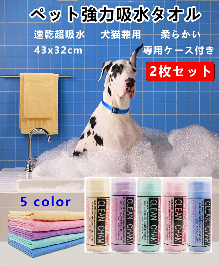 超吸水 タオル ペットタオル ペット用タオル セームタオル 犬 猫 速乾 吸水タオル 軽量 お風呂 吸水 柔らかい 大判 小中大型犬猫適用 2個入