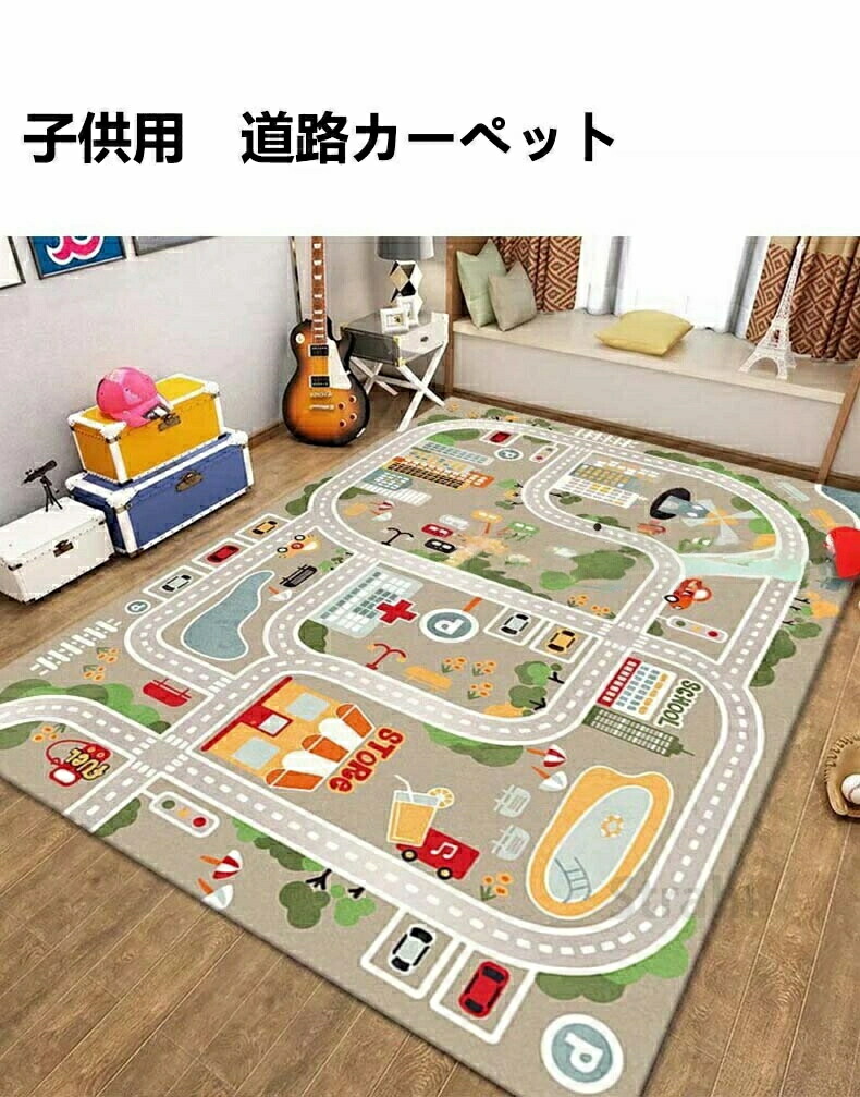 洗濯可能で滑り止め付きの子供用道路柄ラグ 車好きな男の子に最適 幼稚園や小学生のプレイマットとしておすすめ