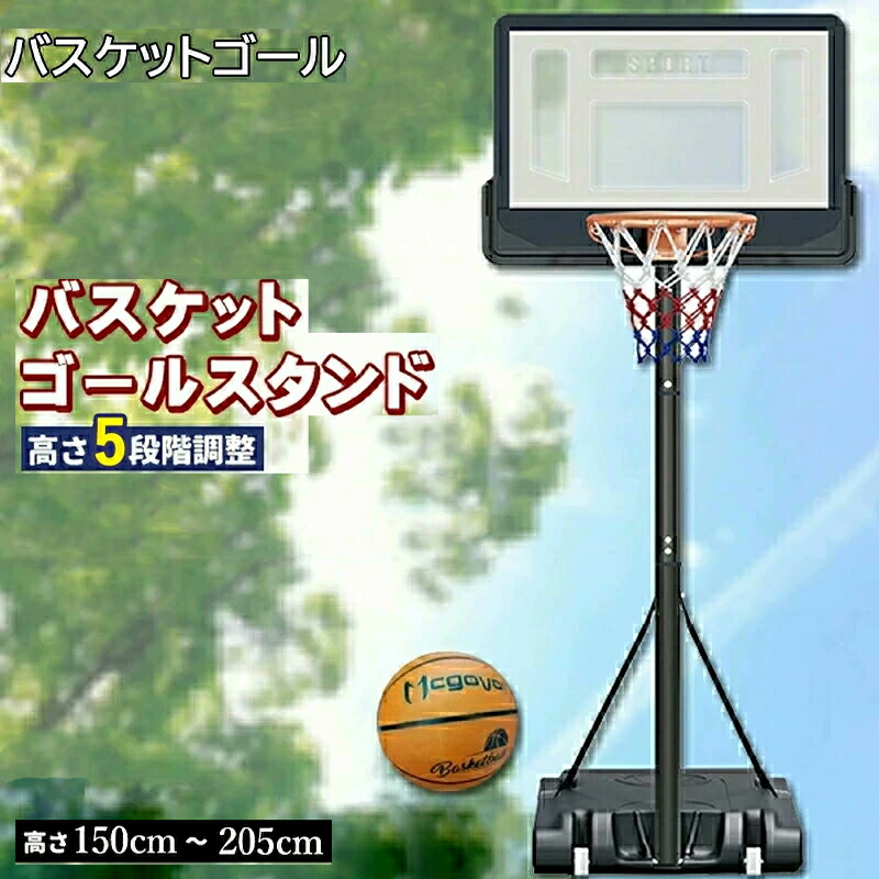 バスケットゴール リング 子供 こども用 バスケゴール 150~205調整可 男の子 女の子へ 誕生日 クリスマスプレゼント ゴール 家庭 ミニバス ミニバスケットボール対応 移動式
