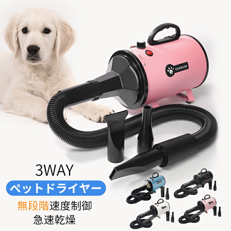 ペットドライヤー 犬 犬用ドライヤー ペット用ドライヤー ブロワー 無段階速度制御 送風機 風速、温度調整可能 強いブロー力 騒音低減強い四色 3つノズル付き