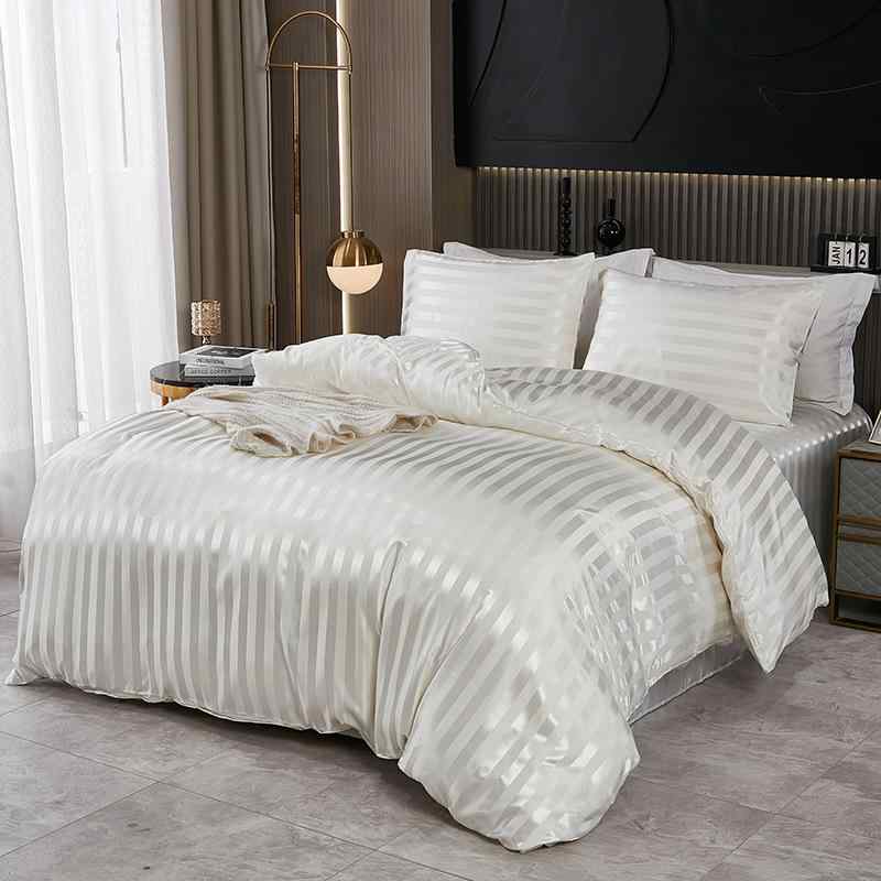 ベッドルーム 寝具 セット 4点 北欧 スタイル スモール チェック 柄 色丁サテン 生地 滑らかな 質感 吸湿速乾 加工 活性染色 さつね織り 軽量 快適 寝心地 ネイビー ブラック カー ホワイト