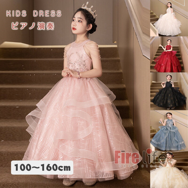 10色 ドレス ピアノ発表会 中学生 演奏会ドレス 女の子 ワンピース 子どもドレス 小学生 140 ロングドレス エレガント 袖なし 子供 フォーマル ジュニア こども 子供ドレス 発表会 キッズ