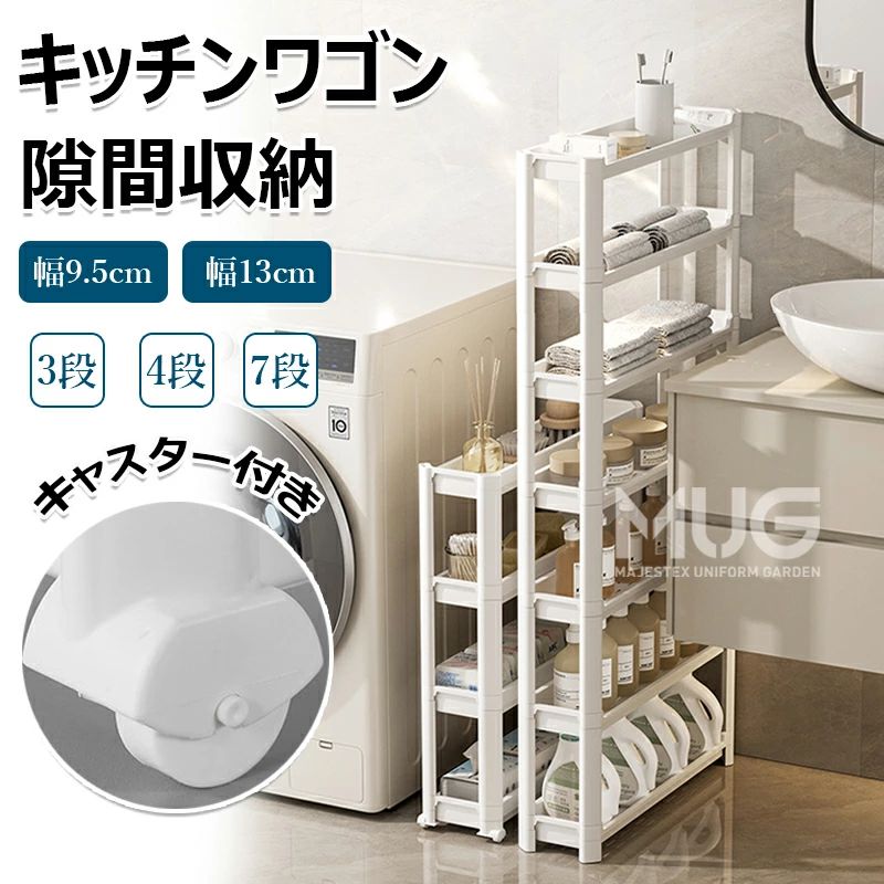 隙間ラック キッチンワゴン スリム 隙間収納 幅9.5cm 13cm すきま キッチン収納 収納ラック 3段 4段 7段 棚 収納 細い棚 キャスター付 ローリングラック おしゃれ 調味料 収納カート