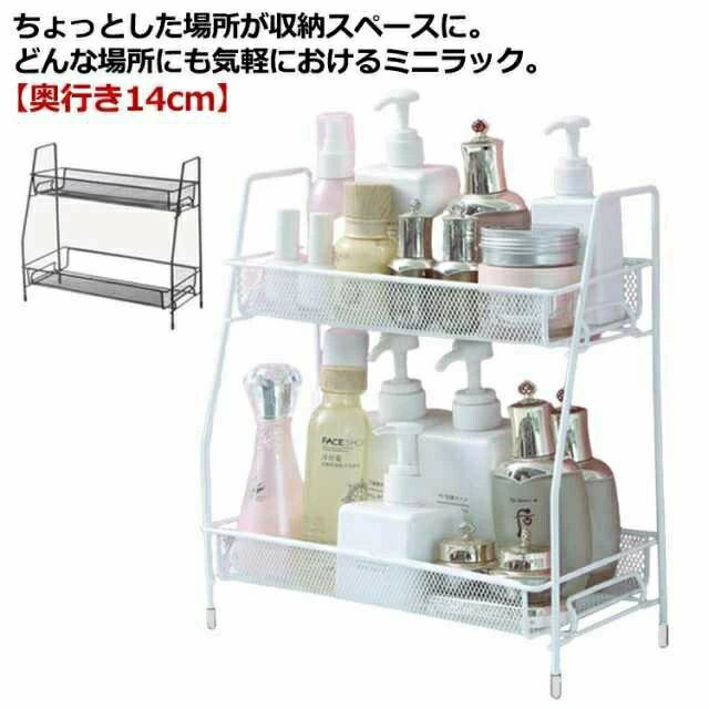 卓上 ミニ ラック 棚 2段 キッチンラック 防水 水切り バス 浴室 洗面所 水回り 化粧品 コスメ 収納棚 スチール 収納ラック ス メッシュ