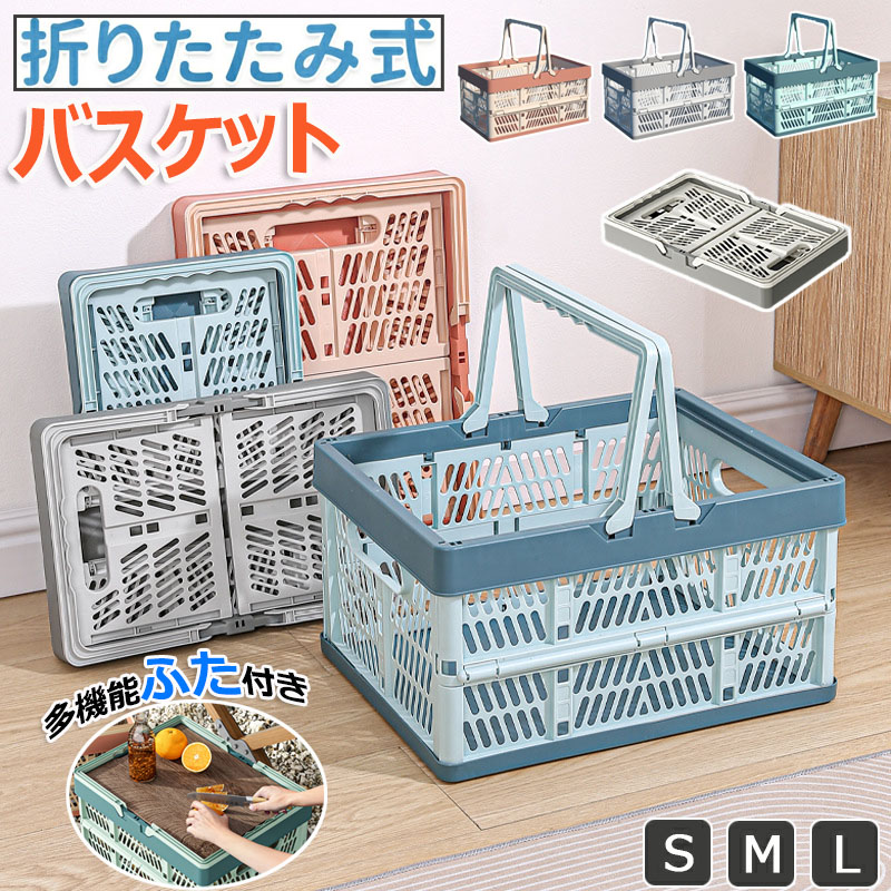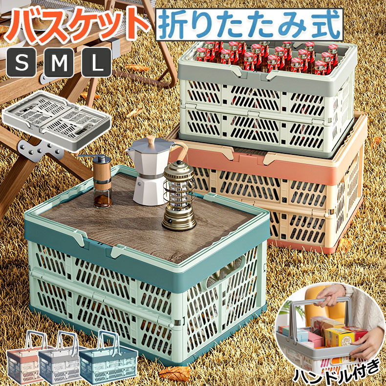 折りたたみ コンテナ カゴ フォールディング ハンディ 取っ手付き 持ち運び簡単 収納ボックス 手提げかご 野菜かご 買い物かご ピクニックバスケット 押し入れ キッチン 車用収納 物置棚