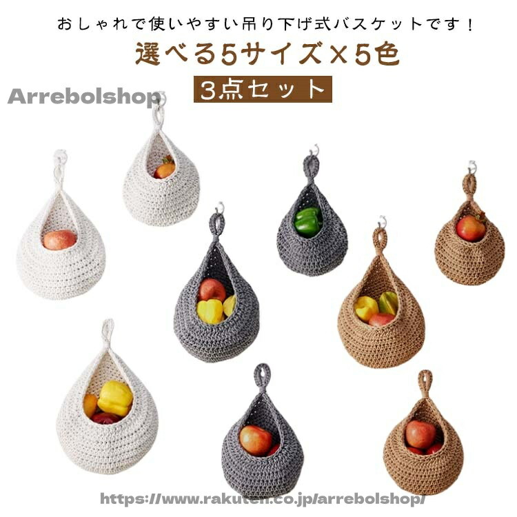 キッチン用吊り下げ式フルーツバスケット 手編みの壁掛け式フル