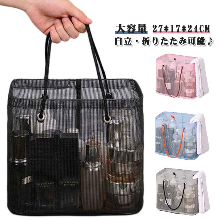 お風呂バスケット 折りたためる カゴ かご 収納 お風呂収納 メッシュ 水切り サウナ 銭湯 温泉 洗濯かご 小物入れ ボックス 大容量 手提げ バス プールバック ポータブル