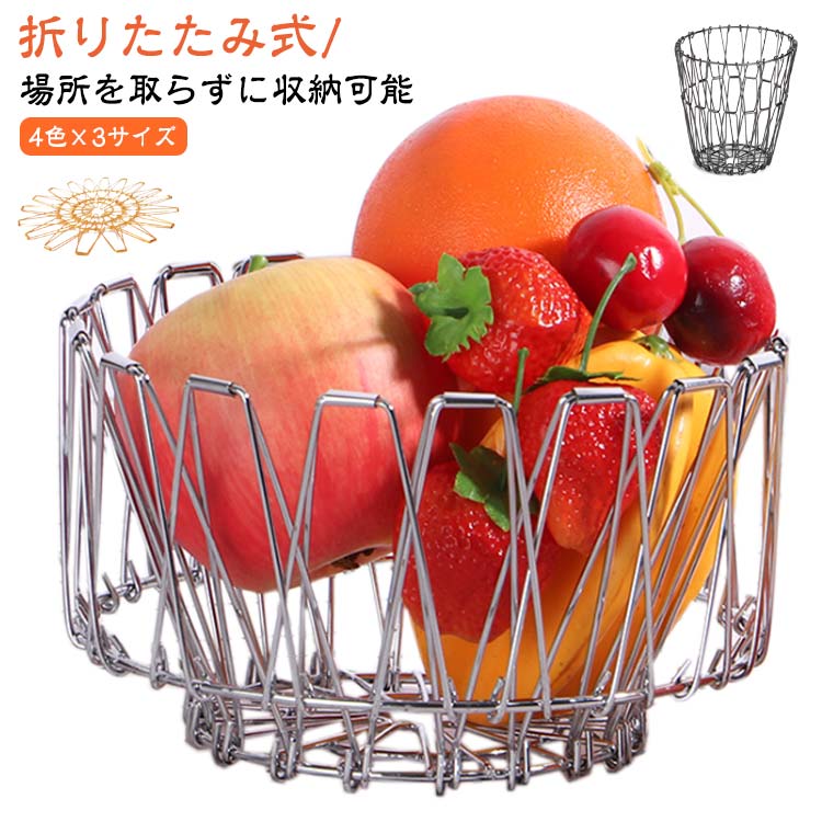 ステンレスバスケット 折りたたみ ワイヤーバスケット 変形 果物かご 黒 ゴールド 収納 フルーツバスケット 北欧 韓国 インテリア 雑貨 ケース 置物 フルーツ モダン リビング キッチン おしゃれ
