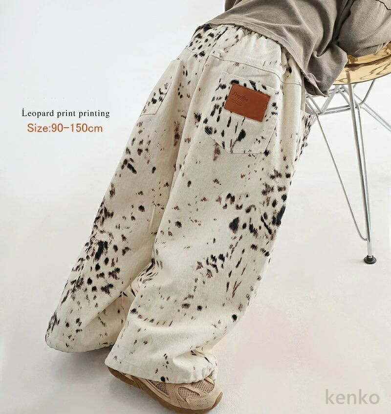 デニムパンツ デニム キッズ 男の子 女の子 豹柄 こども服 ダメージジーンズ 綿100% デニムロングパンツ 演出 散歩 HIPHOP
