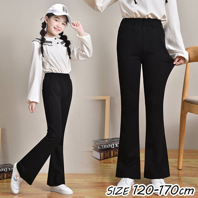 フレアパンツ 子供服 キッズ 女の子 春 夏 秋 冬 パンツ ロングパンツ 無地 通園 通学 ボトムス ズボン おしゃれ 120 140 150 160cm 130