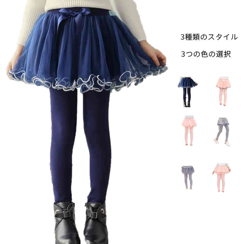 キッズ 春 秋 スカッツ チュールスカート 女の子 子供服 ボトムス レギンス付き カジュアル スカート付き パンツ
