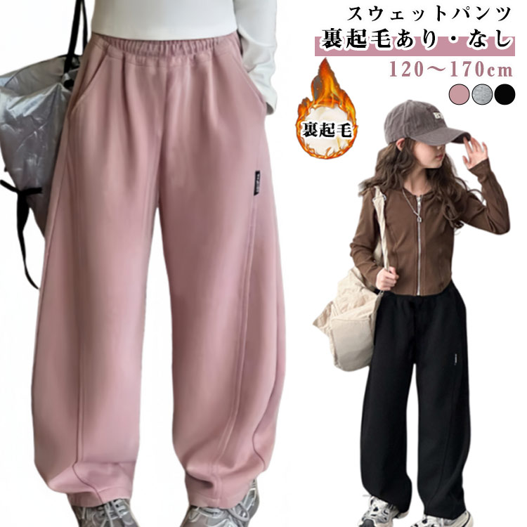 裏起毛 スウェットパンツ 子供服 キッズ 女の子 ワイドパンツ スウェット ロングパンツ 子供 ジャージ ボトムス 長ズボン 暖かい 防寒 スエットパンツ 冬 保温 無地 ウエストゴム 秋冬