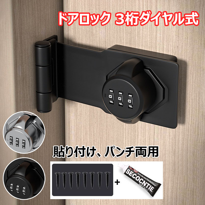 ドアロック 3桁ダイヤル式 部屋鍵後付け 引き戸 部屋 補助錠 落とし防止 金具 鍵キャビネット 暗証番号ロック 引き出し 亜鉛合金製 耐久性 防犯 防錆 パスワードロック 多機能 窓 扉 玄 南京錠