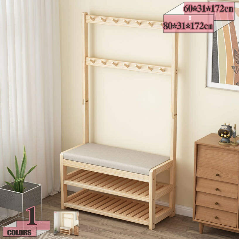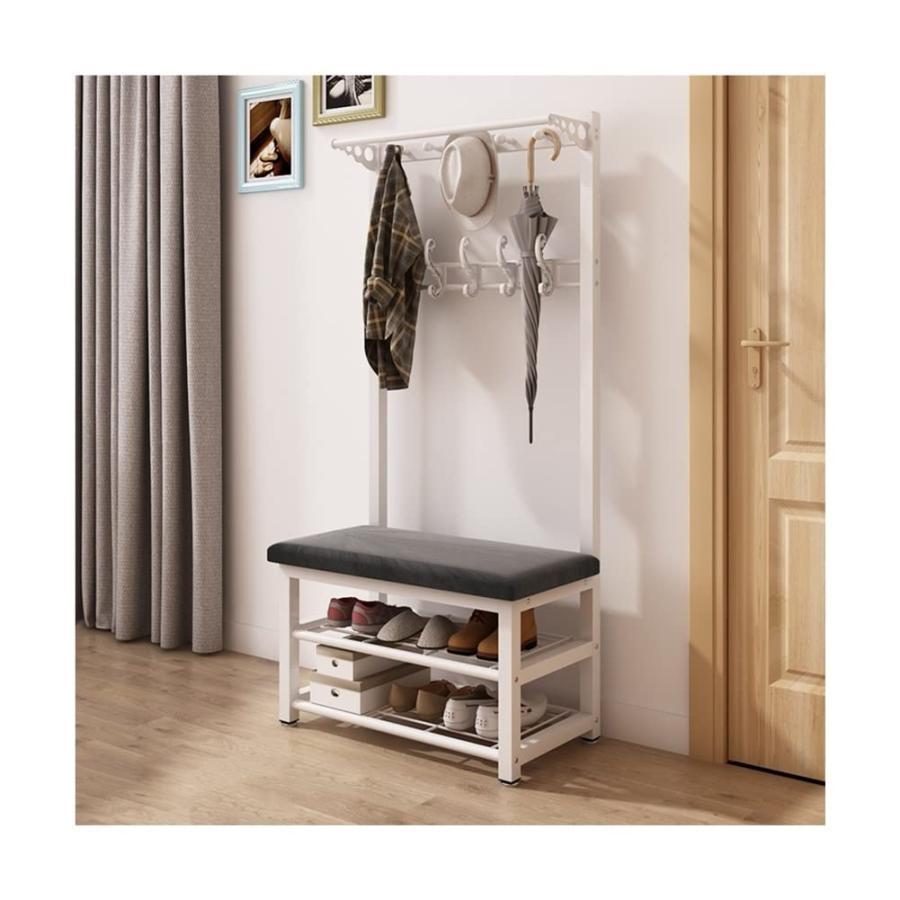 玄関ハンガー 玄関ベンチ ハンガーラック シューズラック 2段棚付き 下駄箱 収納スツール 靴収納 玄関小物 靴ベンチ 低反発クッション 座席付き 収納ベンチ 木製 スツール 腰掛け 省スペー 靴入れ