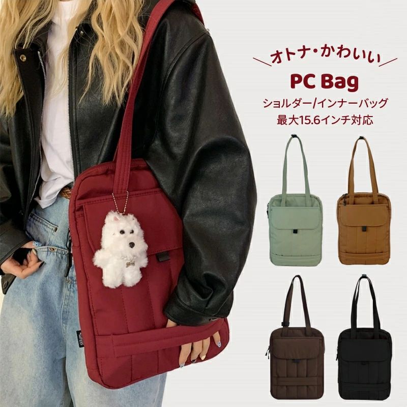 パソコンケース PCバッグ 縦型 肩掛け 手持ち 2WAY パソコンバッグ ショルダー 最大15.6インチ PC対応 おしゃれ PCケース タブレット トートバッグ かわいい 収納 軽 肩掛けバッグ