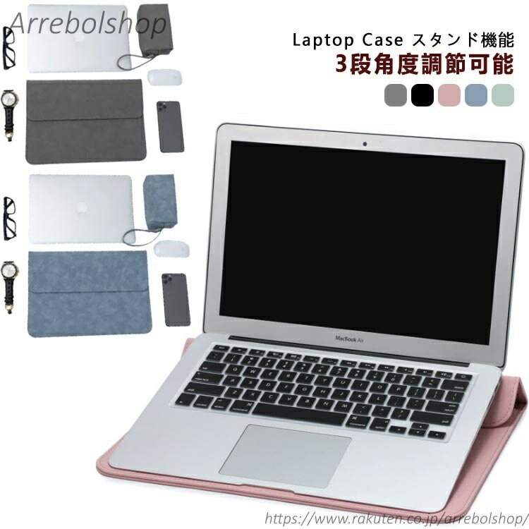 パソコンケース ノート PCケース スタンド機能 ラップトップケース 3段階調節 多機能 撥水 耐衝撃 薄型 パソコンバッグ 多機種対応 マウスパッド PUレザー 軽量 PCバッグ 電源収納ポーチ付き