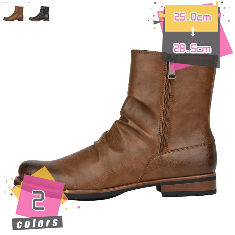 大きいサイズ ドレープブーツ ショート メンズ サイドジッパー ファスナー付き 無地 カジュアル コーデ ワークシューズ バイク かっこいい 春 夏 秋 冬 軽量 耐摩耗 防臭 普段着