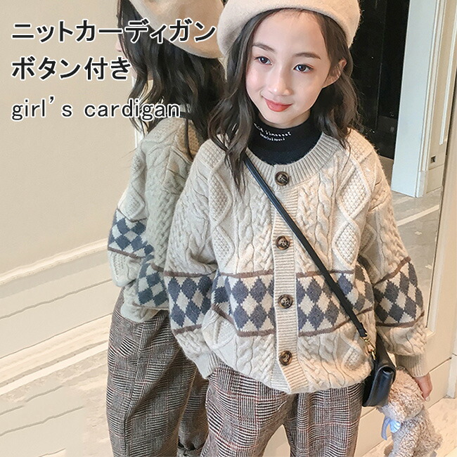 カーディガン 子ども ニットカーディガン 女の子 ケーブル編み ニット ボタンカーディガン 女児 春秋 ニットトップス アウター ジュニア ボタン付き キッズカーディガン レトロ コーディガン