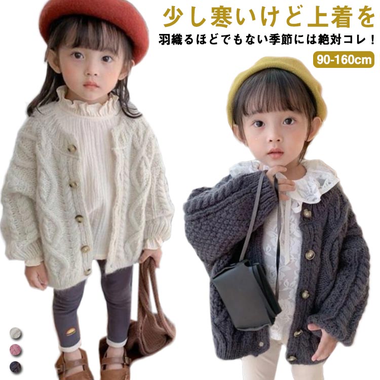 ニットカーディガン 子供服 ベビー 女の子 キッズ 長袖 ケーブル編み ニット セーター カーディガン 全3色 前開き 長袖カーディガン 防寒 暖かい おしゃれ 可愛い 普段着 春 秋 90c 通学着