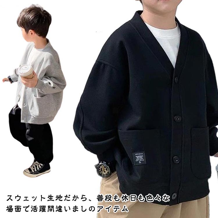 秋 女の子 Vネック カーディガン 長袖 スウェット カジュアル 通学 羽織り 体温調整 子ども 子供服 無地 カーデ 春 シンプル 通園 キッズ 冬 男の子