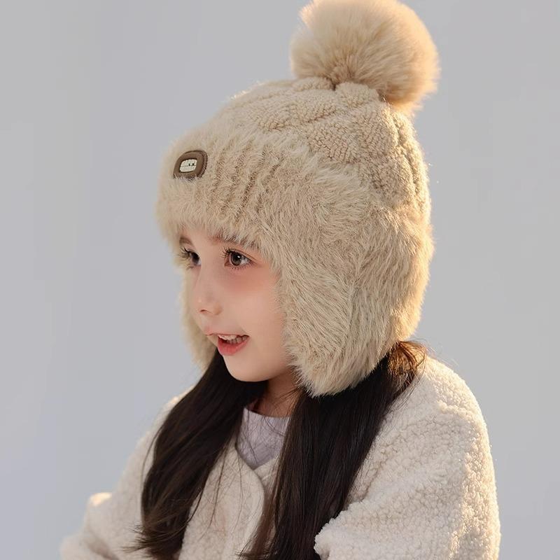 帽子 キッズ 女の子 男の子 冬用 ニット帽 裏起毛 暖かい 防寒 耳当て付き 4歳 5歳 6歳 8歳 10歳 ブラック ピンク系 9歳