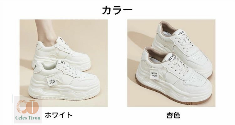厚底スニーカー レディース 靴 春秋 靴 人気 ホワイト 杏色 33(21-21.5cm) 34(21.5-22cm) 35(22-22.5cm) 36(22.5-23cm) 37(23-23.5cm) 38(23.5-24cm) 39(24-24.5cm) 40(24.5-25cm)