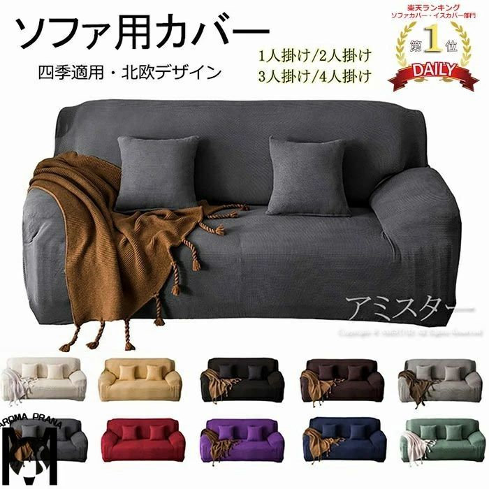 ソファカバー一体型マルチカバー 厚手生 グレー ライトグレー ブラック コーヒー ワイン ネイビー イエロー パープル ベージュ グリーン イエローグリーン アプリコット オレンジ ライトパープル フォーリストグリーン レイクブルー 1人掛け:90-140cm 2人掛け:145-185cm 3人掛け:190-230cm 4人掛け:235-300cm