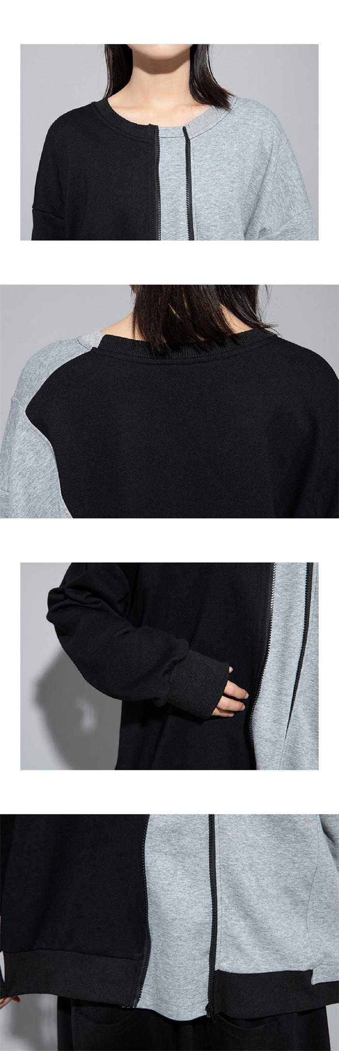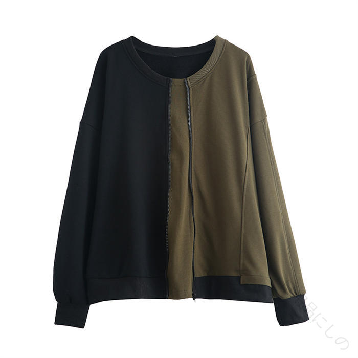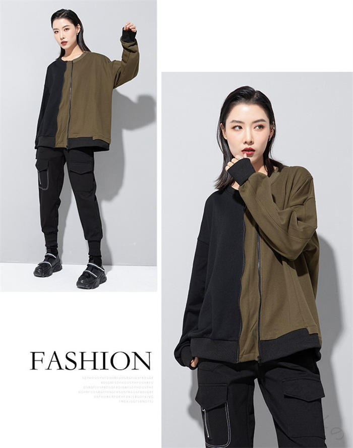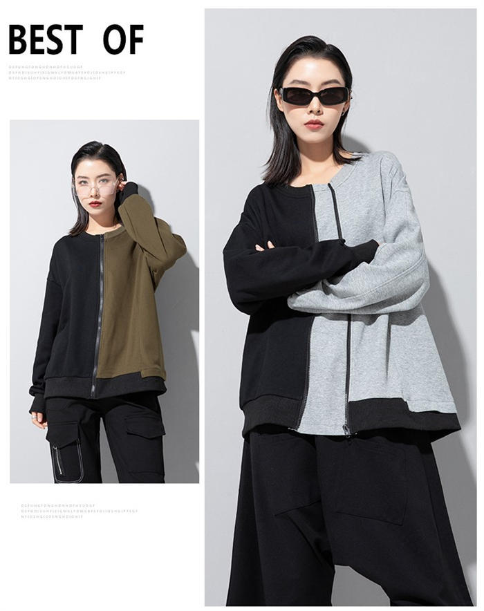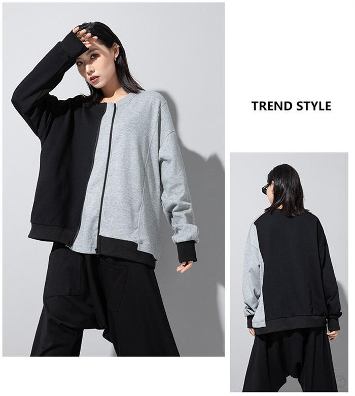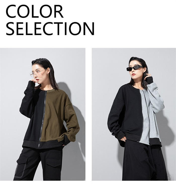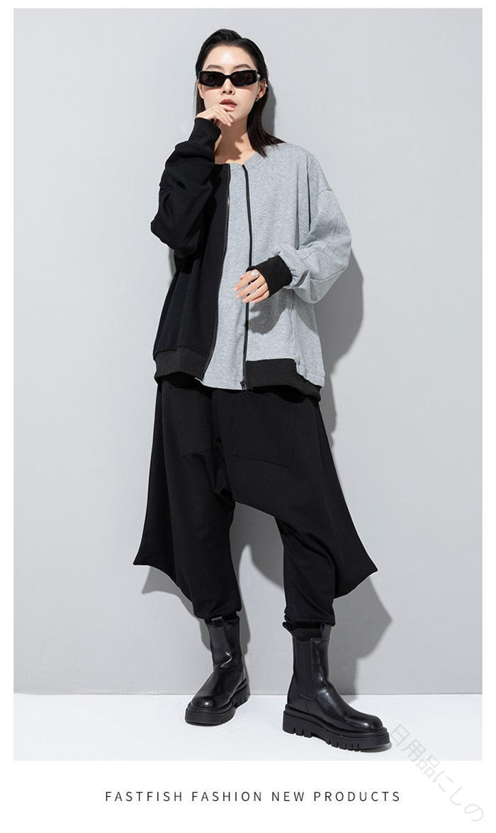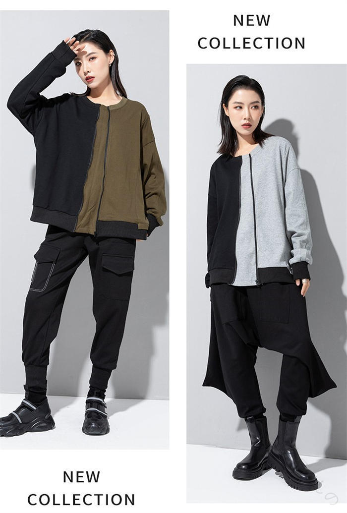 アシンメトリー トレーナー 秋 冬 春 トップス スウェット トレーナー 人気 黒×グレー 黒×カーキ