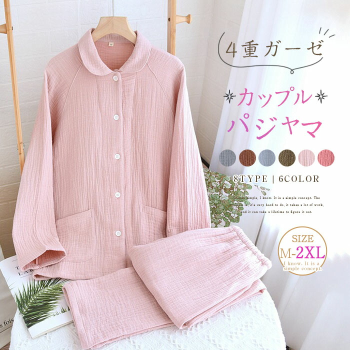 丸襟 4重ガーゼ パジャマ カップル レディース ナイトウェア ルームウェア パジャマ 続々登場 ピンク(女性) ブルー(女性) ピンク赤(女性) コーヒー(女性) ピンクチェック柄(女性) イエローチェック柄(女性) グリーンチェック柄(女性) グレー(男性) ブルー(男性) グリーン(男性) コーヒー(男性) M L XL 2XL