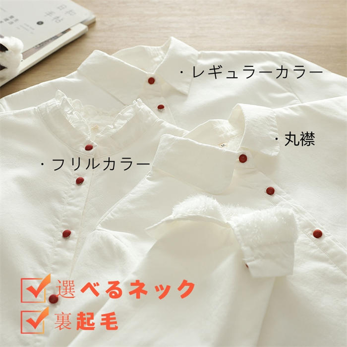 裏起毛 シャツ 長袖 レディース 秋冬 トップス シャツ ブラウス 新登場! レギュラーカラー フリルカラー 丸襟 M L XL 2XL