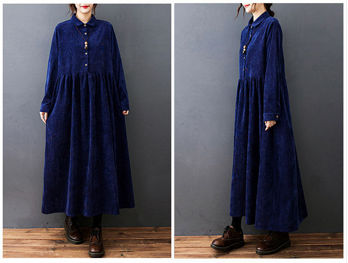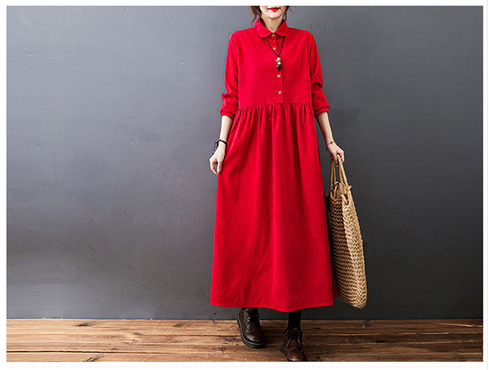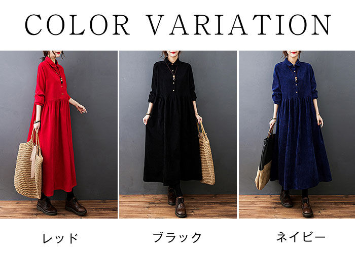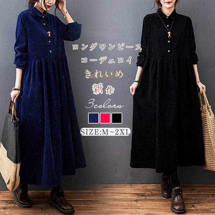コーデュロイ ワンピース 春 秋冬 き ワンピース 続々登場 レッド ブラック ネイビー M L XL 2XL