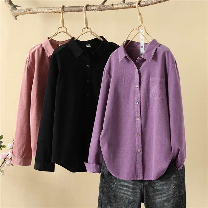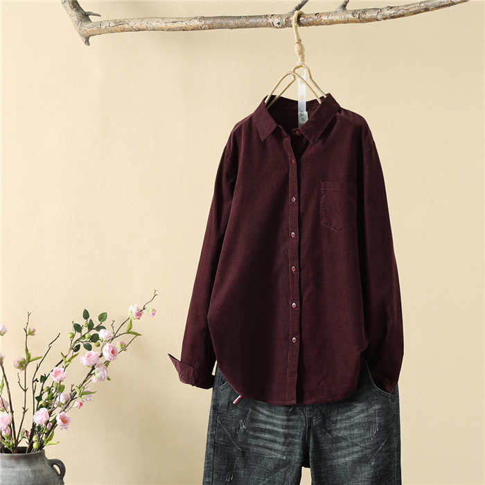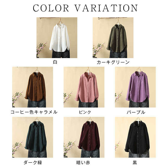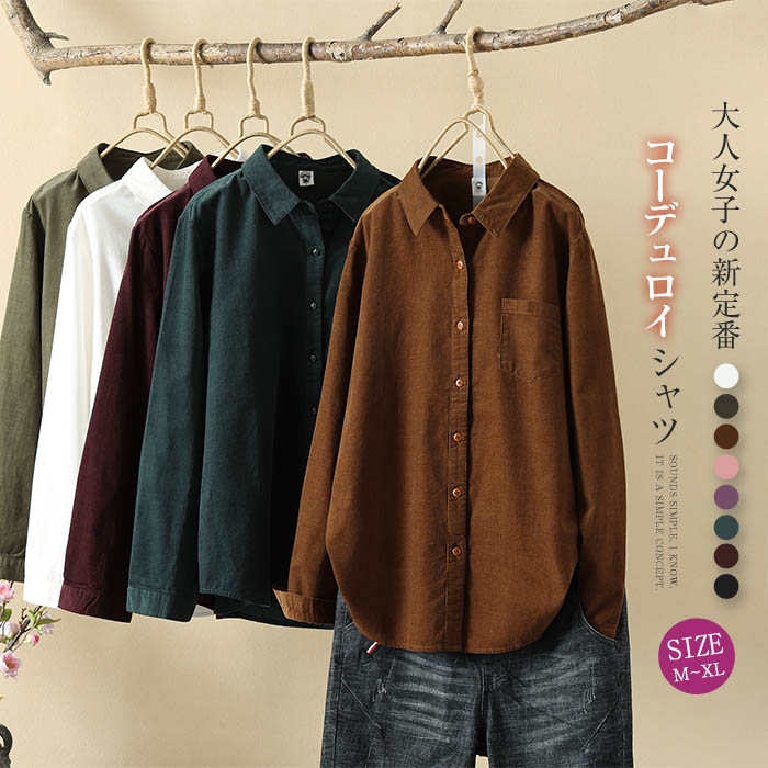 コーデュロイ シャツ ブラウス レディ トップス シャツ ブラウス 超目玉商品 カーキグリーン 白 ピンク コーヒー色キャラメル パープル ダーク緑 暗い赤 黒 M L XL