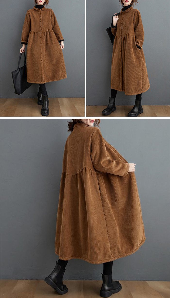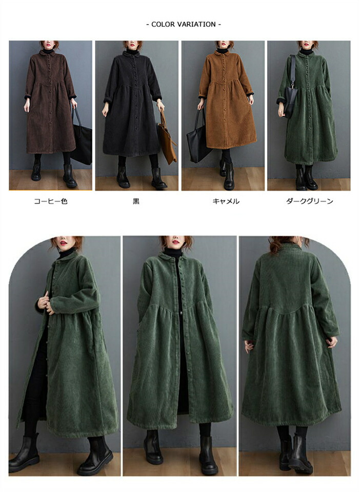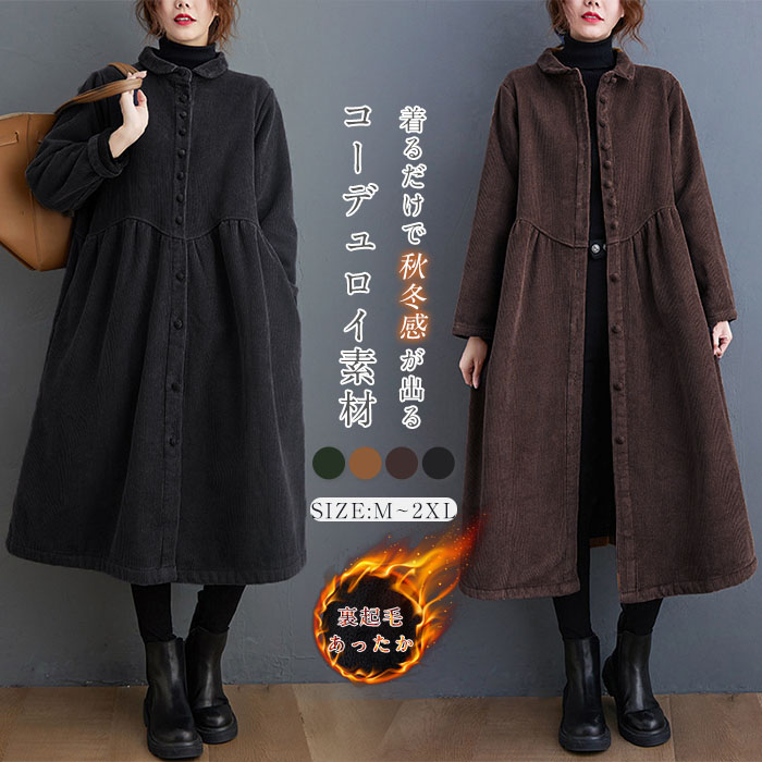 裏起毛 コーデュロイ ワンピース 秋冬 ワンピース 続々登場 コーヒー色 黒 キャメル ダークグリーン M L XL 2XL
