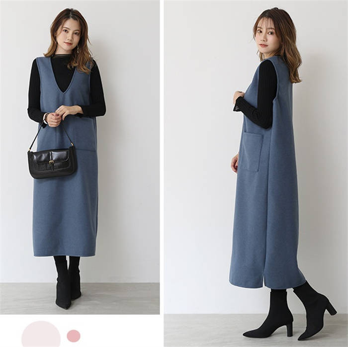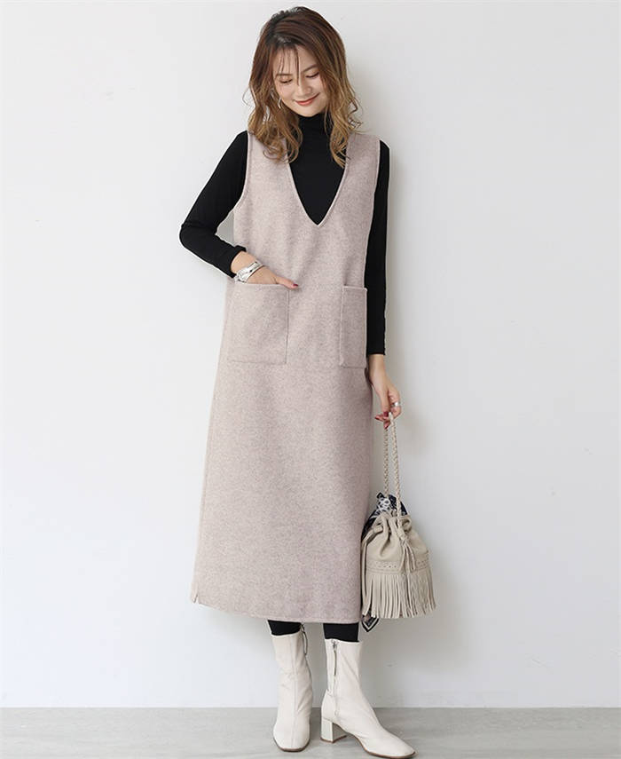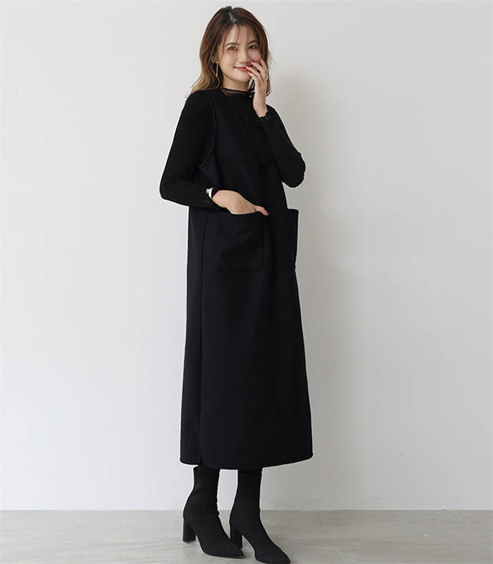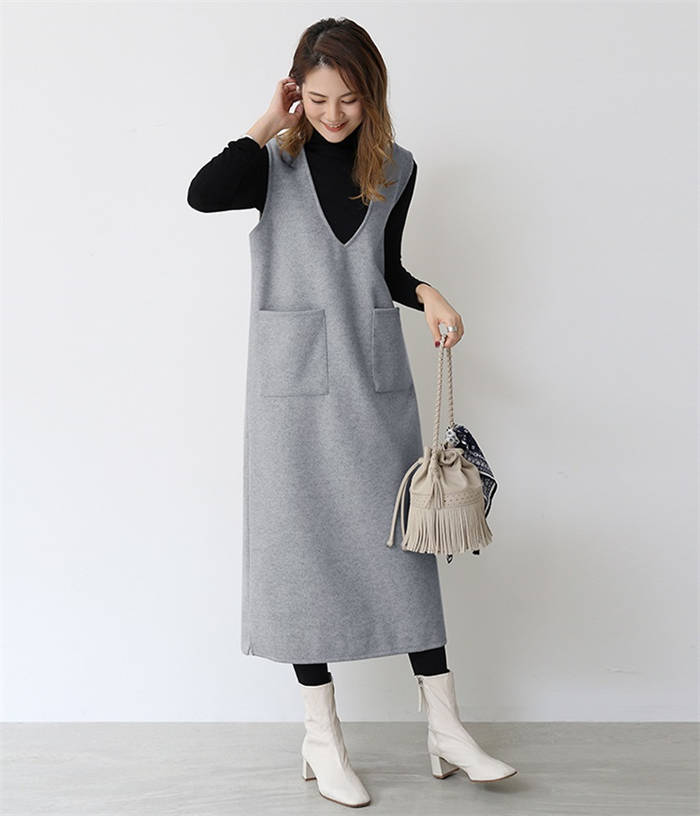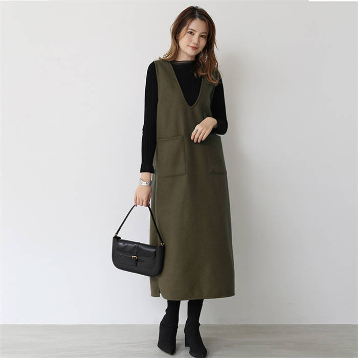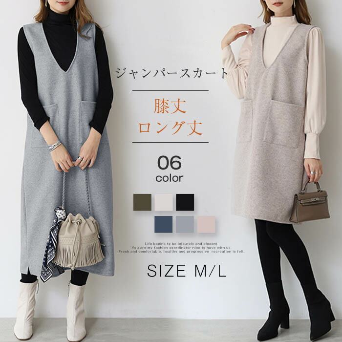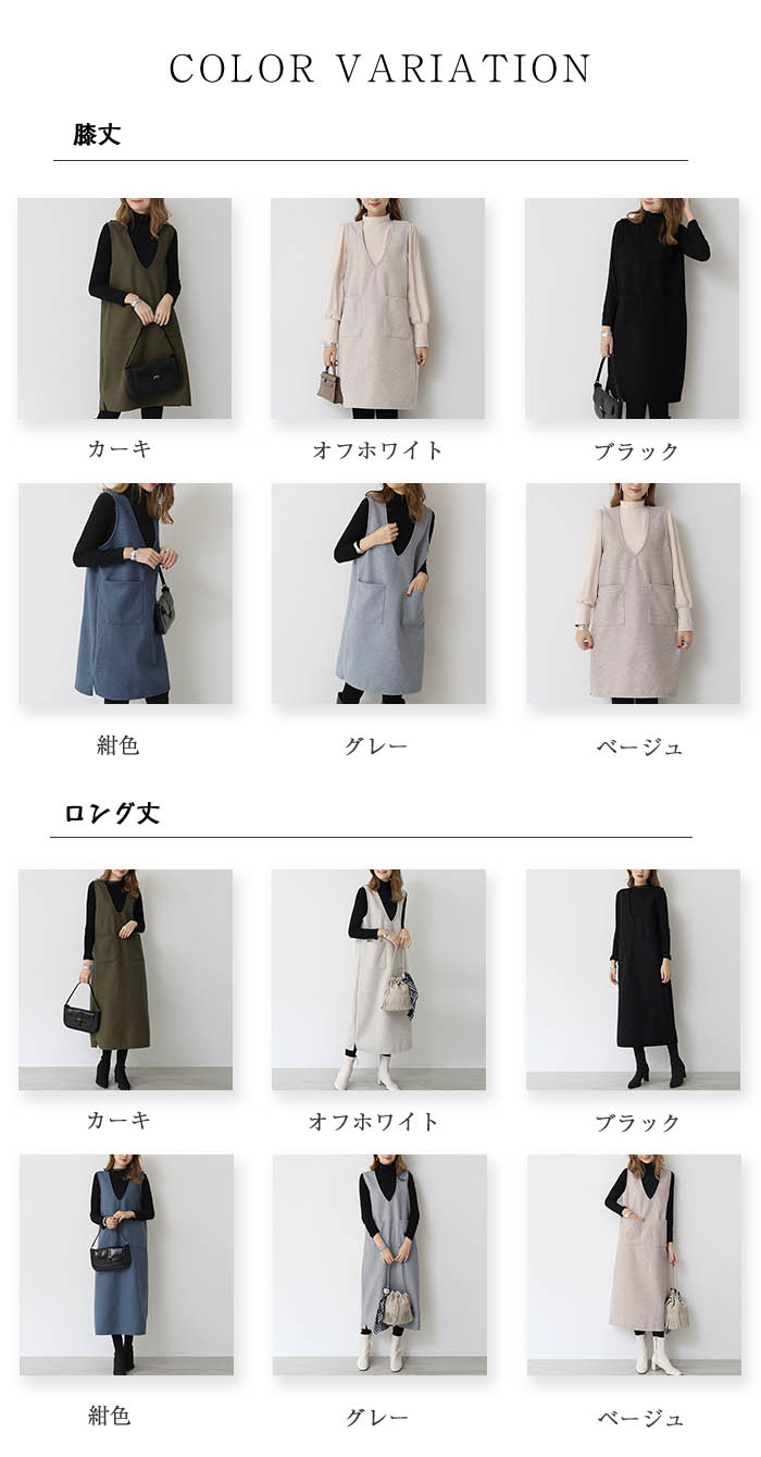 ジャンパースカート 秋 冬 ジャンスカ カーキ オフホワイト ブラック 紺色 グレー ベージュ 膝丈 ロング丈