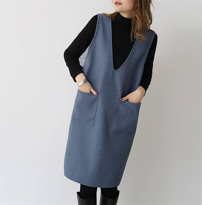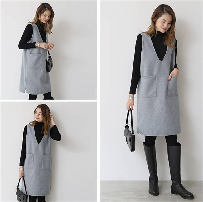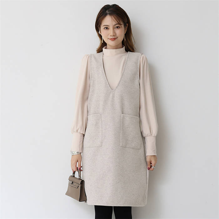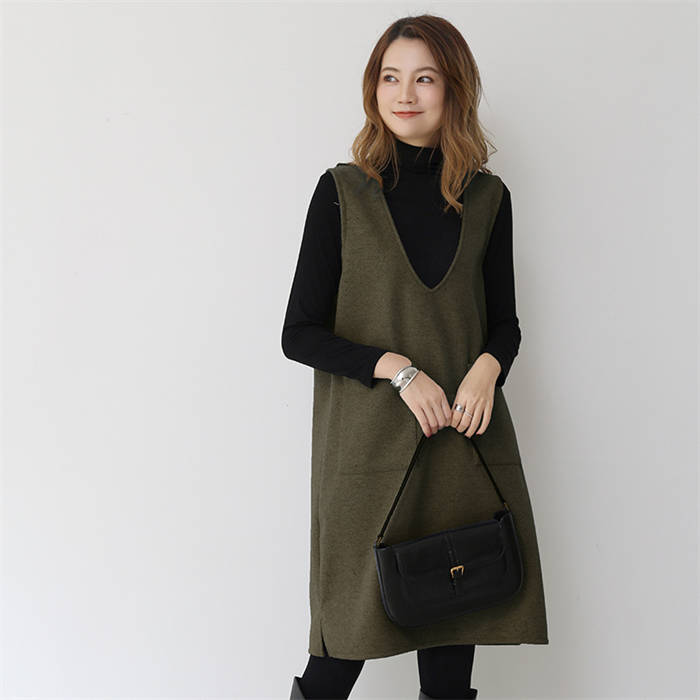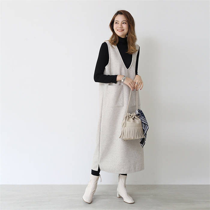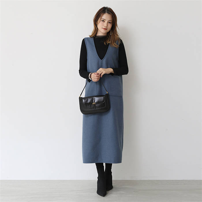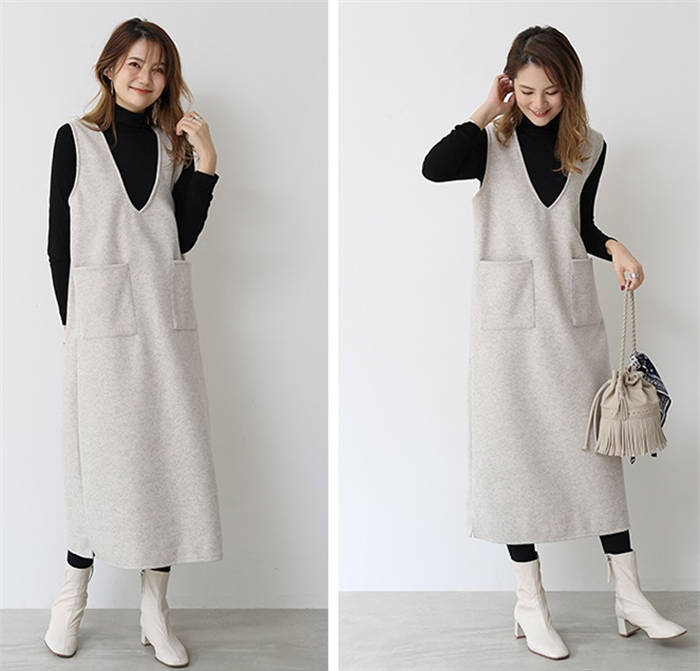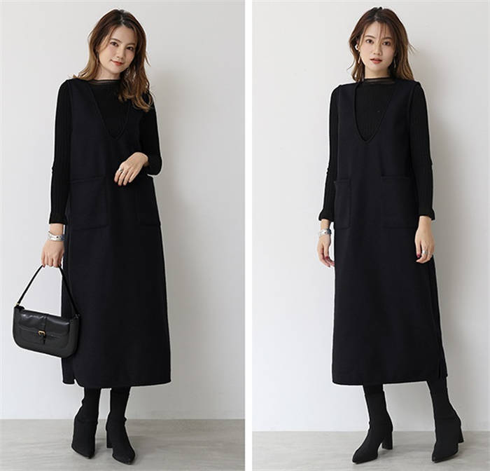 ジャンパースカート 秋 冬 ジャンスカ カーキ オフホワイト ブラック 紺色 グレー ベージュ 膝丈 ロング丈