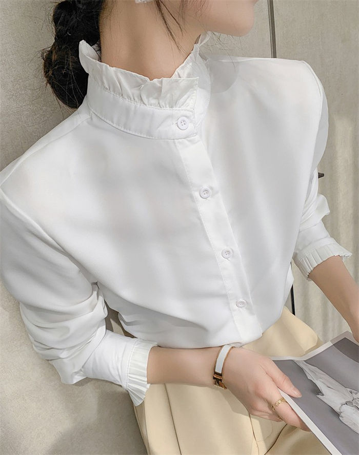 フリル襟 ブラウス レディース スーツ トップス シャツ ブラウス 続々登場 S M L XL