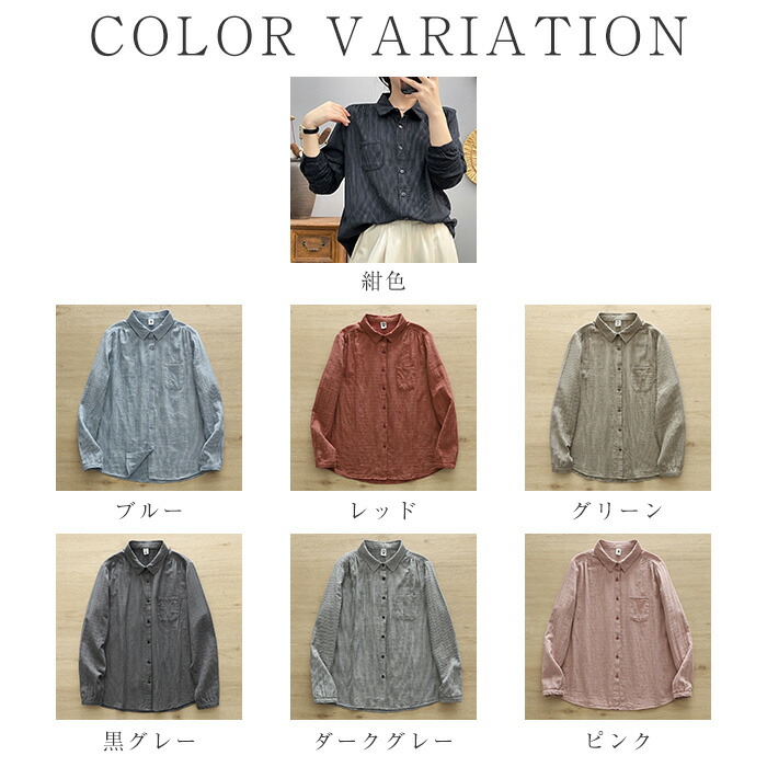 ガーゼ シャツ ダブルガーゼ 綿100 レディースファッション 新登場! ブルー レッド グリーン 黒グレー ダークグレー ピンク 紺色 S M L