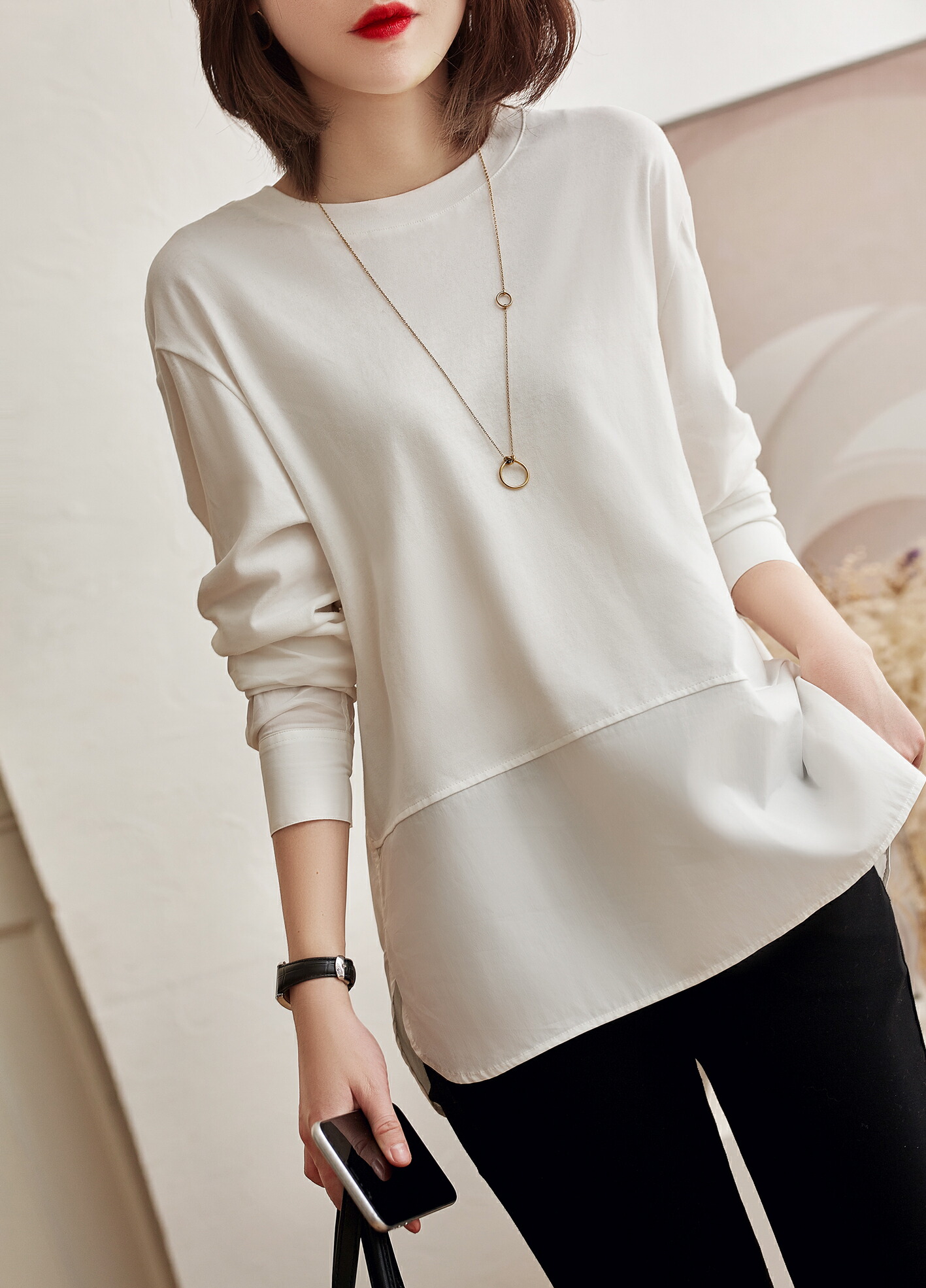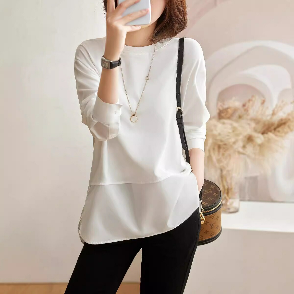 シアースリーブ ドッキングシャツ ボウタイシャツブラウス