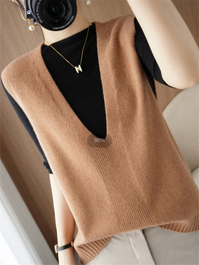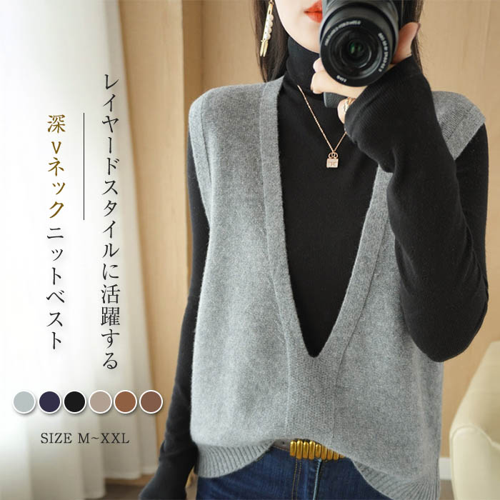 深Vネック ニット ベスト vネック トップス ベスト 豊富な品揃え 黒 グレー ベージュ 紺色 ブラウン ダークラクダ色 M L XL XXL