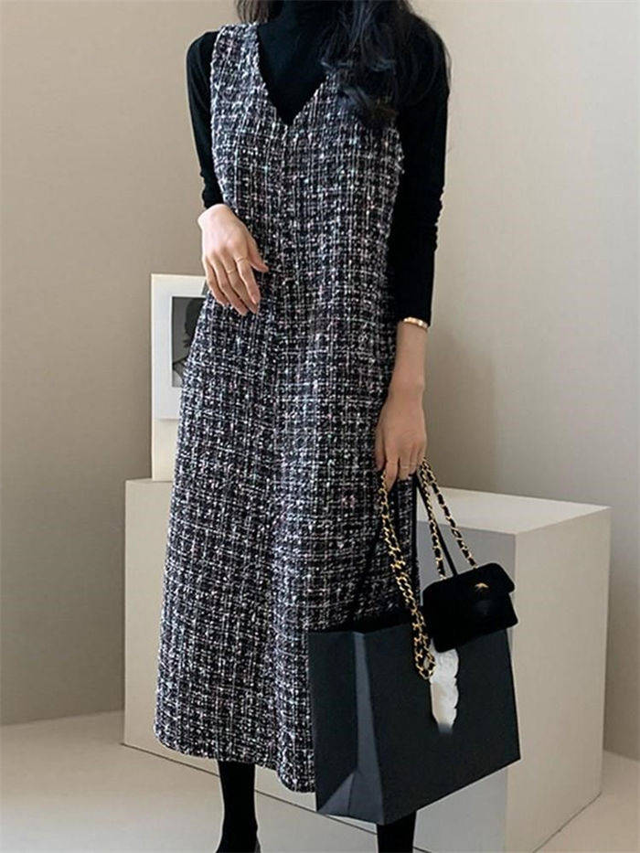 ツイード ジャンパースカート 秋 冬 S M L XL