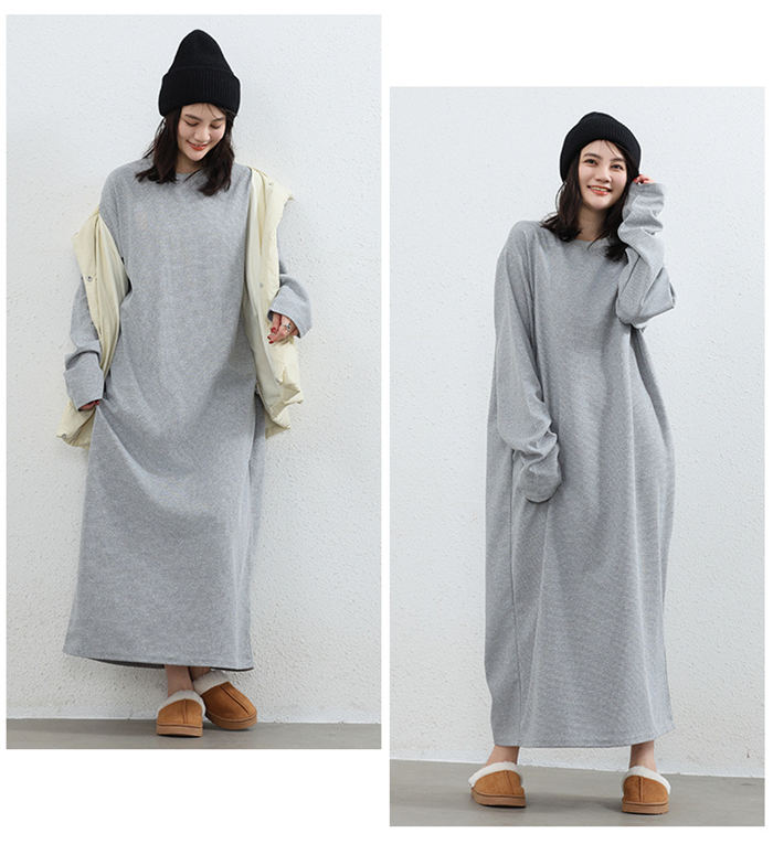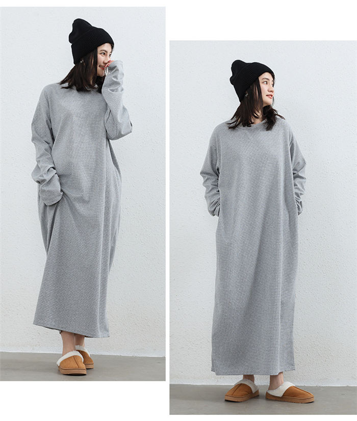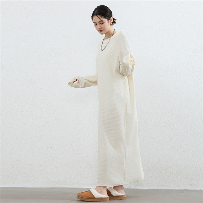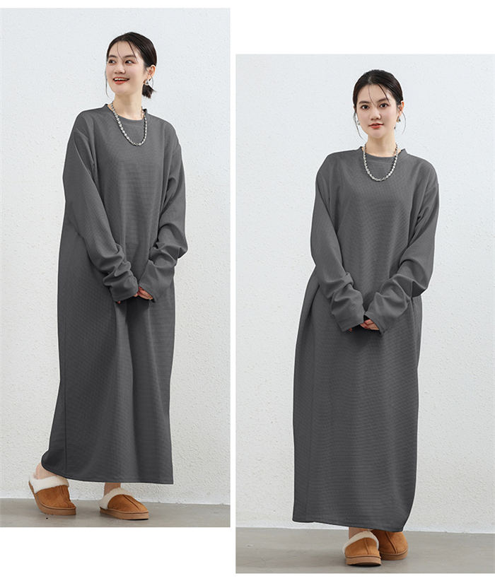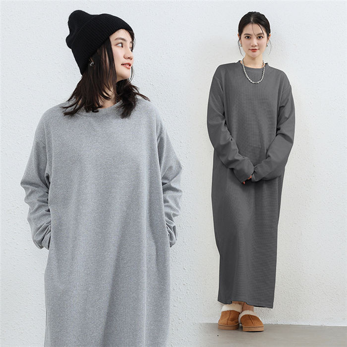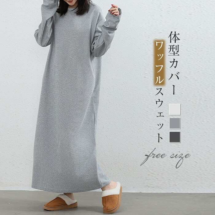 スウェットワンピース ワッフル レディ ワンピース 続々登場 オフホワイト ライトグレー ダークグレー