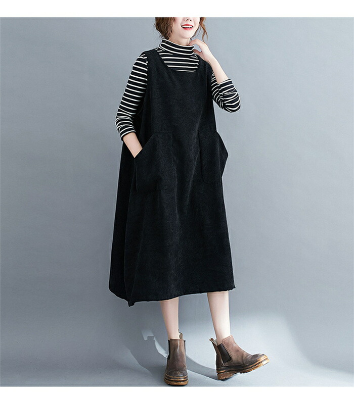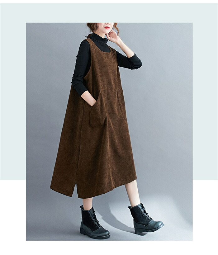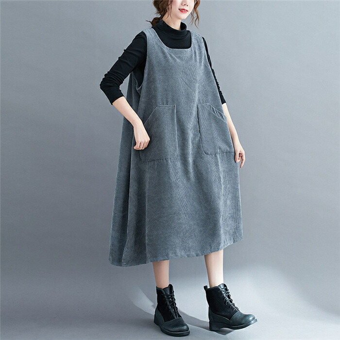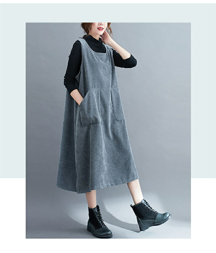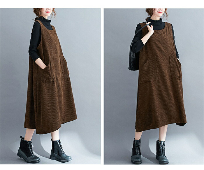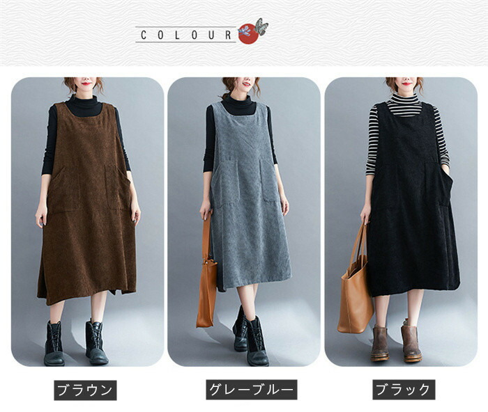 ジャンパースカート 秋 冬 コーデュロ ブラウン グレーブルー ブラック M L XL 2XL